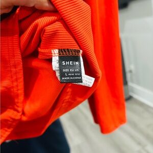Elevate your wardrobe with the SHEIN Orange Ruffled Blouse, featuring elegant long sleeves and a distinctive bib collar. This vibrant top is designed with stylish ruffles, adding a touch of sophistication to any ensemble. Perfect for both casual and formal occasions, this blouse is a must-have for those who love to make a statement.
