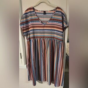 SHEIN Orange and Blue Dolman Sleeve Sundress