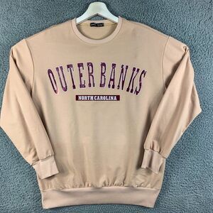 SHEIN Outer Banks NC Sweatshirt Womens Medium Tan Beach Outdoor Summer Carolina