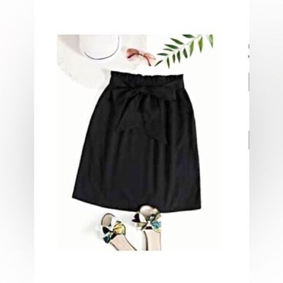SHEIN Paperbag Waist Belted Skirt Black Size Medium (6)