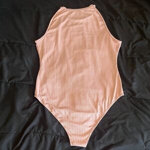 Stylish peach ribbed bodysuit. Soft and comfortable. Ideal for casual wear.
