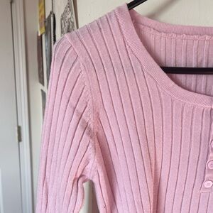 Stylish ribbed top. Features button-up front. Long sleeves. Soft and comfortable.