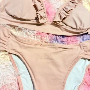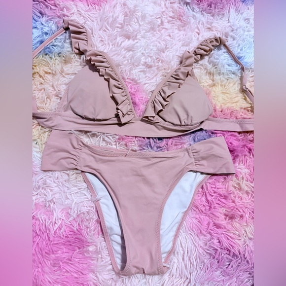 Chic bikini set with ruffle details. Soft pink color.