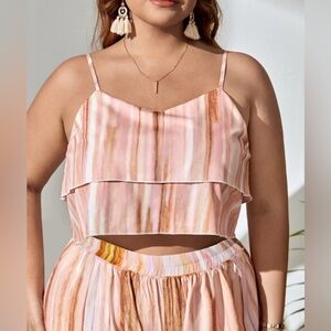 SHEIN Pink and Brown Striped Wide Leg 2 piece