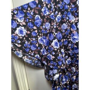 Elevate your wardrobe with this stunning SHEIN plus-size A-line swing dress, perfect for any party or cocktail event. The vibrant multicolor floral pattern dances across the knee-length fabric, creating a lively and eye-catching look. The V-neckline and flutter sleeves add a touch of elegance, while the elastic waist ensures a comfortable fit. Ideal for spring gatherings, this dress is both stylish and practical, being machine washable for easy care. This pre-owned piece is ready to bring joy to your special occasions.