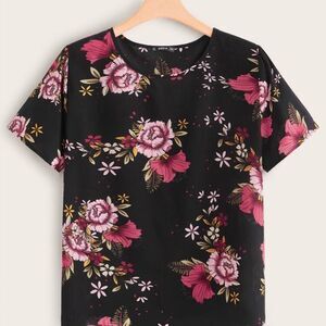 SHEIN Plus Short Sleeve Floral Print Top 0XL 12.