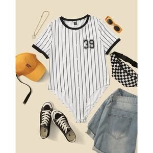 SHEIN Plus Striped & Number Contrasting Bodysuit