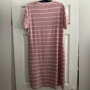 Embrace effortless style with this striped pink casual dress. Perfect for any occasion, this dress offers comfort and elegance. The soft pink hue adds a touch of femininity to your wardrobe.