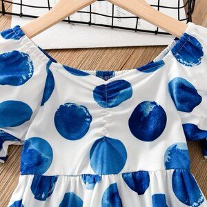 SHEIN Polka Dot Puff Sleeve Ruched Ruffle Hem Dress 5/6