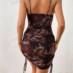 SHEIN Privé Figure Graphic Draped Collar Drawstring Side Cami Dress NWOT