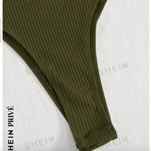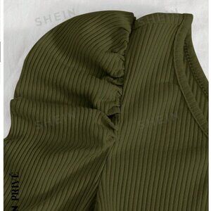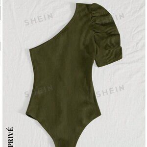 SHEIN Privé One Shoulder Puff Sleeve Ribbed Knit Bodysuit Sz L