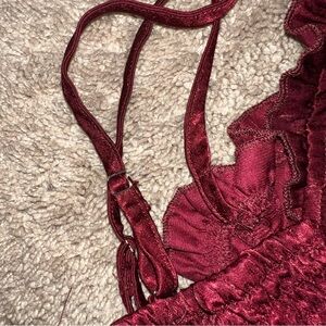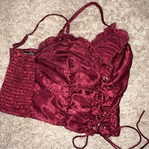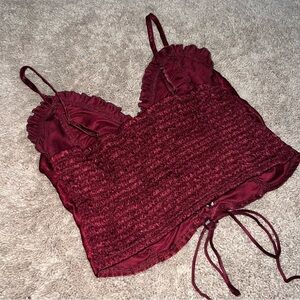 SHEIN Privé Plus Frill Hem Lace Up Burgundy Cami Top Size Large