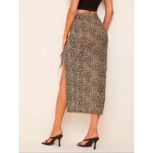 SHEIN Privé Split Thigh Drawstring Knot Side Leopard Skirt Size Large