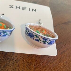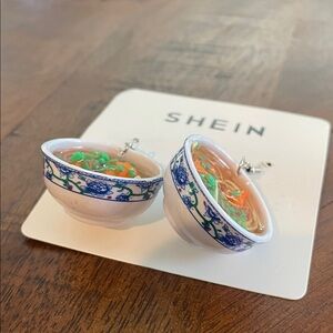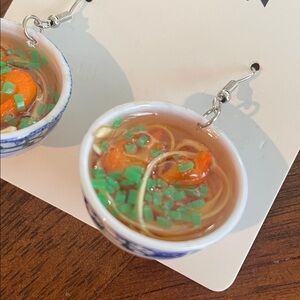 Playful earrings featuring orange noodles and green garnish. Adds fun to any look. Approximately 2” long New never worn