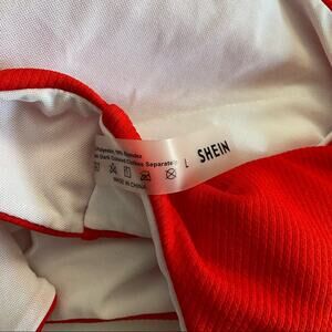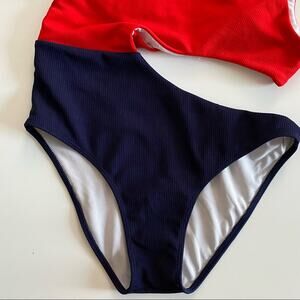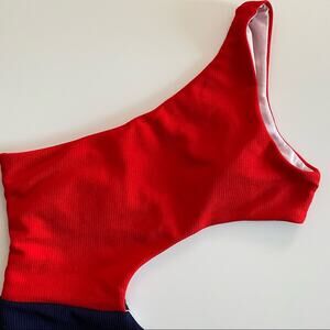 SHEIN Red Navy Colorblock One Shoulder Cut Out One Piece Swimsuit Size Large