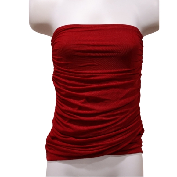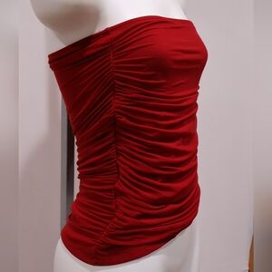 Stylish red tube top. Features ruched detailing. Perfect for casual outings.