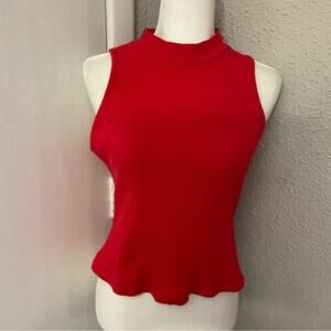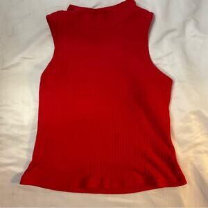 SHEIN Red Sleeveless Ribbed Mock Turtleneck Tank L Corporate Siren Cherry Girl