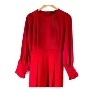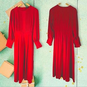 SHEIN Red🎄Maxi Dress with Puff ruffle cuff sleeves and tucks on front S