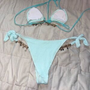 Dive into style with this elegant aqua bikini set. Perfect for a day at the beach or lounging by the pool. The chic design and vibrant color make it a must-have for your swimwear collection.