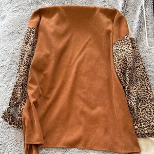 Classic ribbed knit top by SHEIN. Warm rust color with fine texture. Crew neckline for everyday wear. Soft, stretch fabric for comfort.