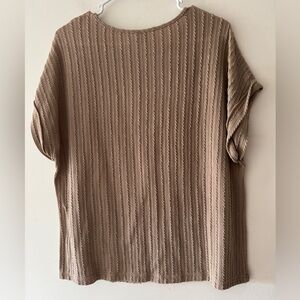 SHEIN Ribbed Neutral Brown Short Sleeve Top