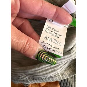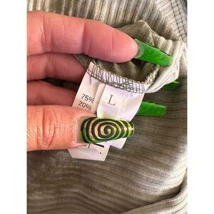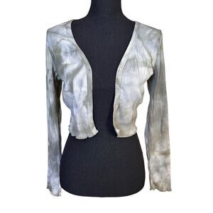 SHEIN Ribbed Olive Green and White Tie-dyed Cropped Long Sleeved Button Front Sh