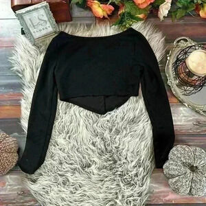 Elevate your style with this enticing black woven crop top – a perfect blend of casual charm and contemporary flair. Embrace the allure of long sleeves, a square neck, and front hook-and-eye closures, complemented by an on-trend asymmetrical hem.