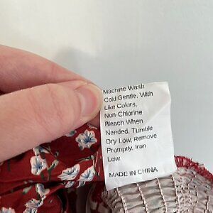 SHEIN? Rust Red White Floral Off the Shoulder Tie Bow Smocked Back Boho Crop Top