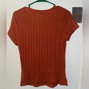 SHEIN Rust Ribbed V-Neck Tee