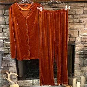 SHEIN Rust Velvet Pants & Cardigan Set‎