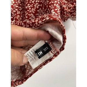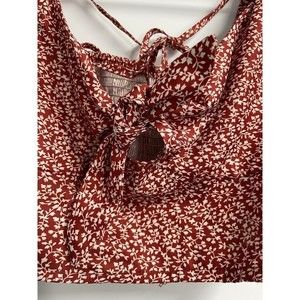 SHEIN Rust & White Floral Crop Front Cut Out Tie Puff Sleeves Cottage Top Size M. In good condition Smoke free home Ba2