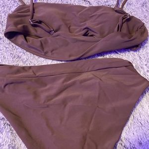SHEIN SOLID HIGH WAISTED BIKINI SWIMSUIT SET RED AND BROWN