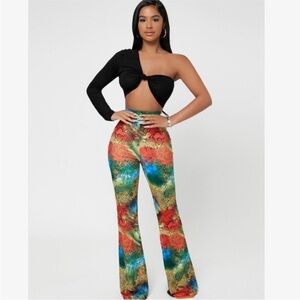 SHEIN SXY Crocodile Snakeskin Print Flare Leg Pants rainbow multicolor size 4XL
