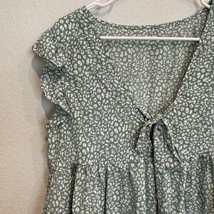 SHEIN - Sage Green - Tie Front Ruffle Top