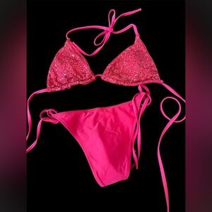Name/Details: SHEIN Sequin bikini, triangle cup, high waist, ties side, and wireless bra