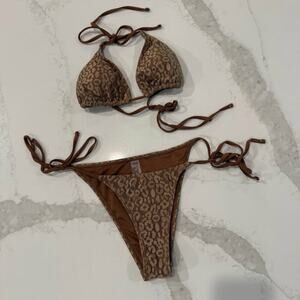 SHEIN Sexy Leopard Print Halter Triangle Bikini Set Womens Small Brown/Gold Swim