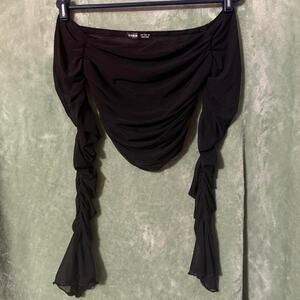 SHEIN Sheer Black Ruched Mesh Off Shoulder Top -M