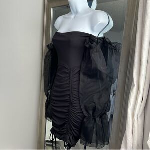 SHEIN Sheer Mesh BellĀ Sleeve Ruched DrawstringāKnotāBodyconāMiniāDressāSizeā4