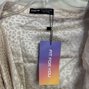 SHEIN Shimmering Cream Cowl Neck Blouse Size L with matching belt