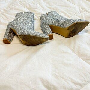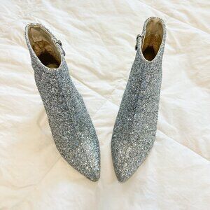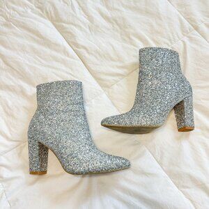 SHEIN Silver Glitter Ankle Booties Women’s Size 8 Block Heel Pointed Toe