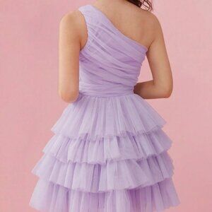 SHEIN Size M (6) Lavender "Enchnt" Tiered Mesh One Shoulder Formal Party Dress. Excellent Like New Condition, No Holes, Rips, Stains or Snags. Layers of Ruffled Mesh with a Draped One Shoulder Styling. Side Zipper Closure. Lined. Please refer to measurements in photos to ensure proper fit. Shown on size 4-6 mannequin.