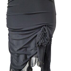 SHEIN Size S (4) Black Asymmetrical Hem Ruched Bodycon Rosette Embellished Dress