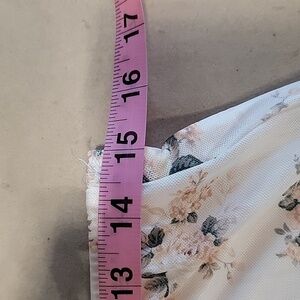 SHEIN Size XL Peachy Cream with Floral Pattern Mesh Overlay Midi Skirt, EUC. Excellent Used Condition. Midi Length, Elasticized Waistband, Lettuce Hem. Lined. Please refer to measurements in photos to ensure proper fit.