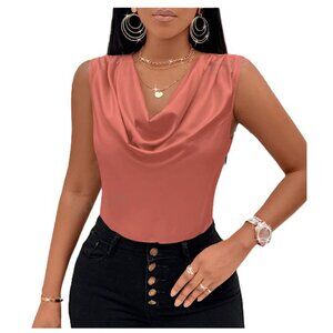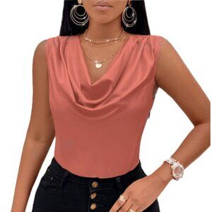 SHEIN Solid Draped Collar Sleeveless Blouse
