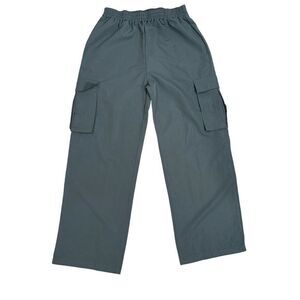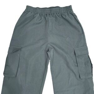 SHEIN Solid Gray Cargo Pants 100% Polyester wide leg bell bottoms elastic L