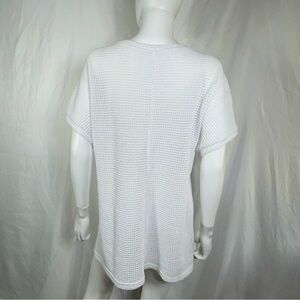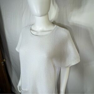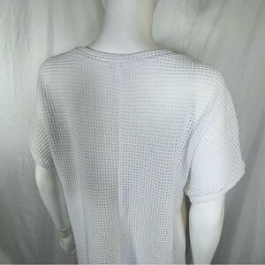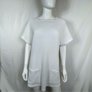 SHEIN Summer White Textured Batwing Sleeve T-Shirt With Double Pockets
