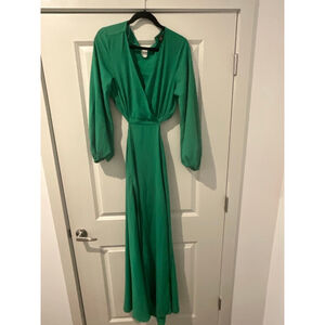 SHEIN Surplice Neck Split Thigh Cutout Dress Preowned Size Medium 61 inches in length Green