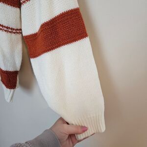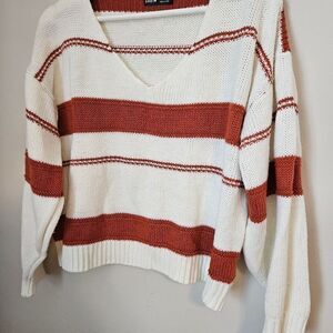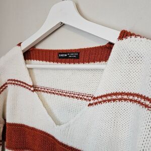 SHEIN Sweater V-Neck Knit Striped White Orange Business Casual Neutral Trendy