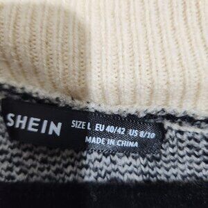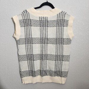 SHEIN Sweater Vest Womens Large Cream Black Check Plaid V Neck Knit Pullover