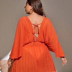 SHEIN Swim Curve Plus Size Solid Batwing Sleeve Cover Up Dress